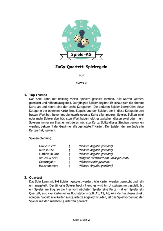 In Kürze wird es ein ZaGy-Quartett mit vielen bekannten Gesichtern des Zabergäu-Gymnasiums geben.