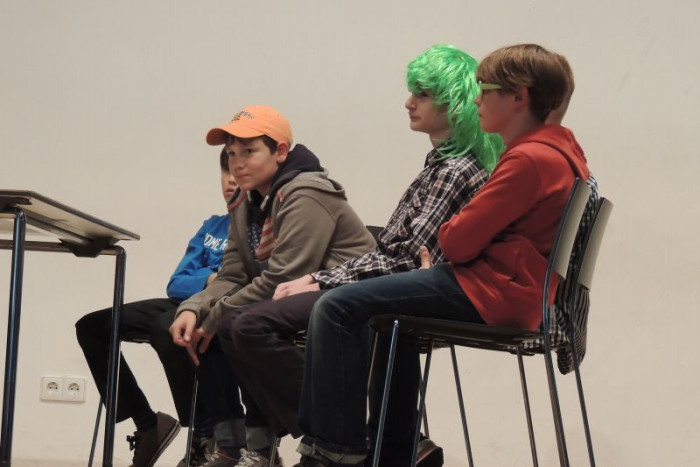 Auch die Klasse 6a hat sich für witzige Sketche entschieden und nimmt darin vor allem die Lehrer auf den Arm.